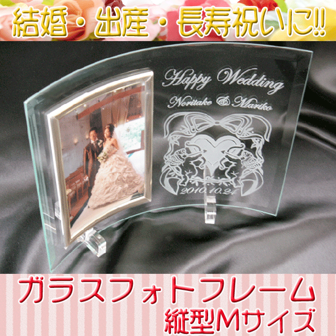 【名入れ プレゼント】フォトフレーム 縦型 Mサイズ 【ガラス 誕生日 結婚祝い 出産祝い 還暦祝い 記念品 名入れ 贈り物 プレゼント ギフト オリジナル 人気 】男性 女性