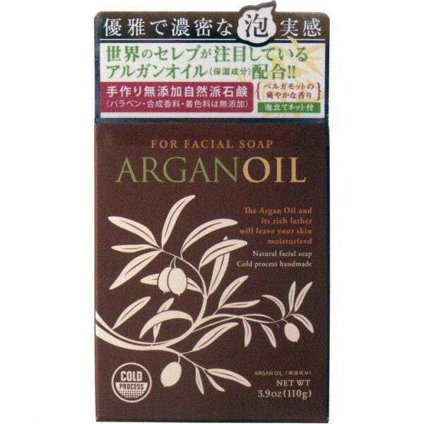 「5点セットでの販売となります。」手作り無添加自然派石鹸!!世界の名だたるセレブが使っているということで、話題になっているアルガンオイル!!モロッコに生育するアルガンの木に実る果実100kgから僅か2〜3リットルしか採取できないとても希少なオイルで、美肌を誇るモロッコ美女たちによって大切に受け継がれ、年を重ねた肌にうるおいを与える伝統のエイジングケアオイルです。こだわりの製法:日本国内の工場にて、丁寧にひとつひとつ手作りされており、コールドプロセス製法(低温製法)で作られた石鹸です。低温でつくることにより、アルガンオイルなどの有効成分を壊すことなくそのまま石鹸に閉じ込めることが出来ます。【全成分】カリ含有石ケン素地、水、アルガニアスピノサ核油(アルガン油)、ベルガモット果実油※香りは天然ベルガモット果実油を使用しています。 【ご使用方法】適量を水またはぬるま湯で泡立て、泡で包み込むようにやさしく洗い、その後泡をよく洗い流してください。【付属品】泡立てネット本製品は、予告なくパッケージが変更される場合があります。予めご了承お願い致します。